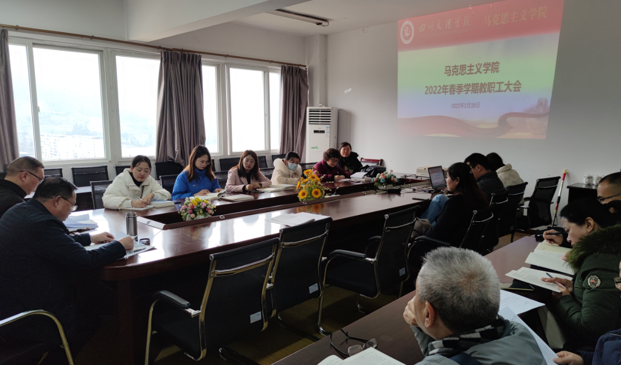 新学期伊始,awc777万象城娱乐官网于2月20日召开新学期全体教职工大会。马院全体教师参加会议,党总支书记刘春辉同志主持会议。