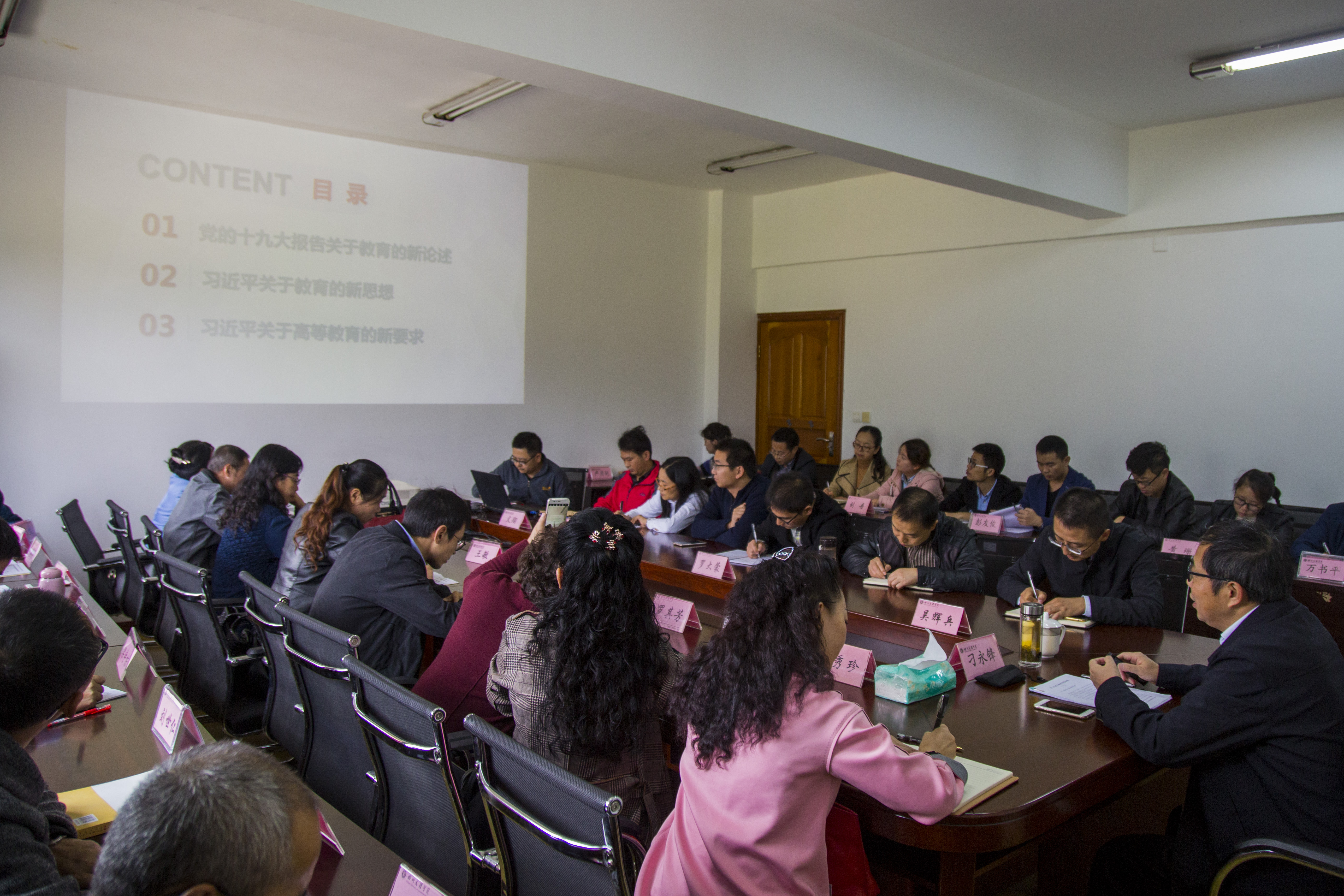 王院长在总结时说,刁校长的专题辅导报告以生动而平实的语言,详实而丰富的资料,宽阔而独特的视野,从三个方面对习近平新时代中国特色社会主义教育思想作了详细解读和理论阐释,报告系统深入、纵横对比、数据详实、案例丰富、常学常新,既让我们对习近平新时代中国特色社会主义教育思想有了一次深入的学习,又让我们明确了目前高等教育发展的新形势和新任务。学院将坚持以习近平新时代中国特色社会主义教育思想为指导,认真贯彻落实学校第一届党代会精神提出的“三步走”的发展战略,落地落实学校“