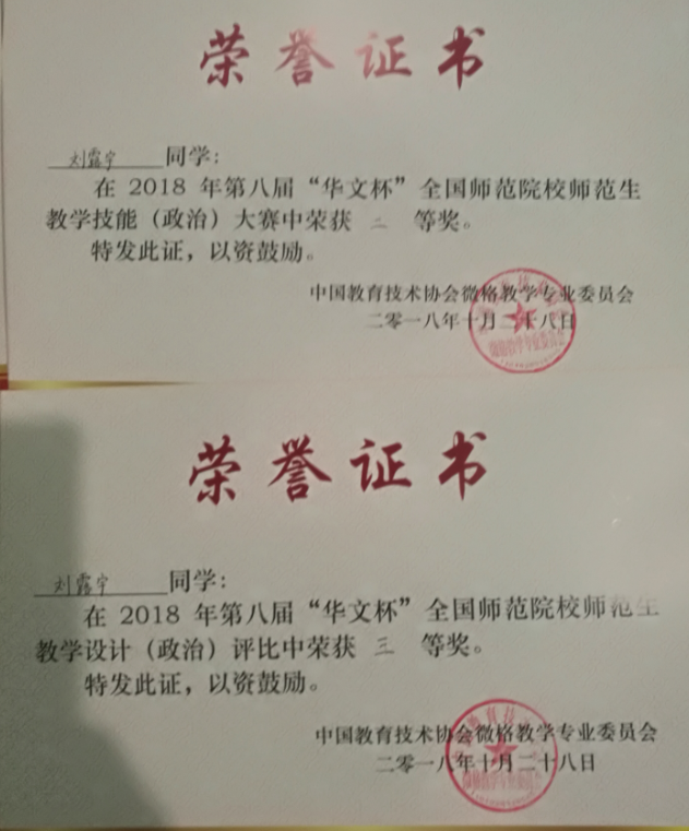 10月26日至28日,由中国教育技术协会微格教学专业委员会主办的2018年第八届“华文杯”全国师范院校师范生教学技能(政治)大赛决赛在南京晓庄学院举行。万象城学生刘露宇获得教学技能大赛二等奖,教学设计评比三等奖。