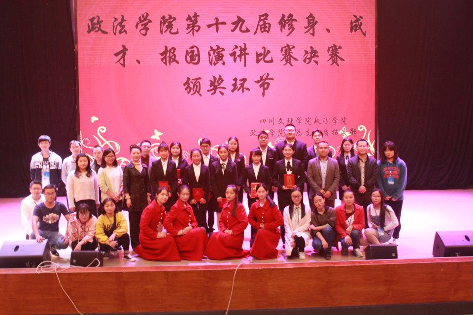 11月7日15:00,awc777万象城娱乐官网、 政法学院“第十九届修身、成才、报国演讲比赛决赛”在传媒楼多功能厅举行。出席本次比赛的有党总支书记刘春辉、院长王秀珍、党总支副书记张善喜、学工办主任唐幸福、辅导员刘丹老师、张岚老师及大一各班班主任。本次比赛主持人为李顺杰和张帆。万象城大一全体同学观看了此次比赛。