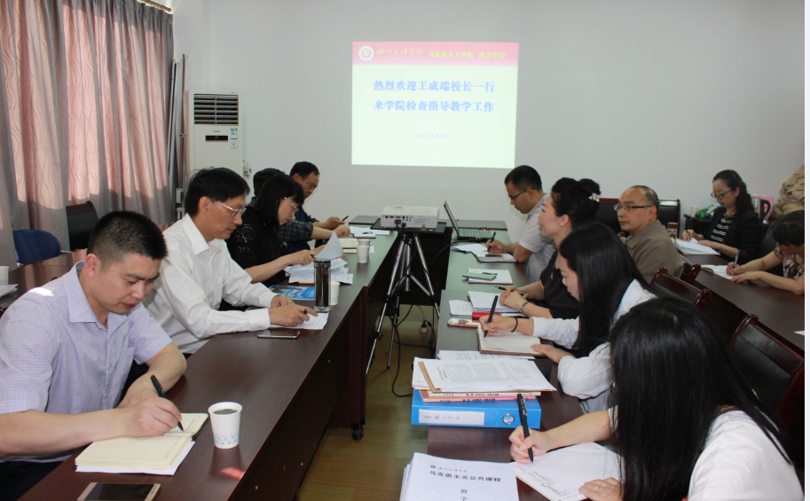 5月15日上午,校长王成端率教务处、校办、评估处督导专家一行来学院检查指导中期教学工作。王校长在学院党政领导的陪同下,查看了学院宣传展板、走访了办公场所、图书资料室、教研室,详细了解了学院的办公条件。