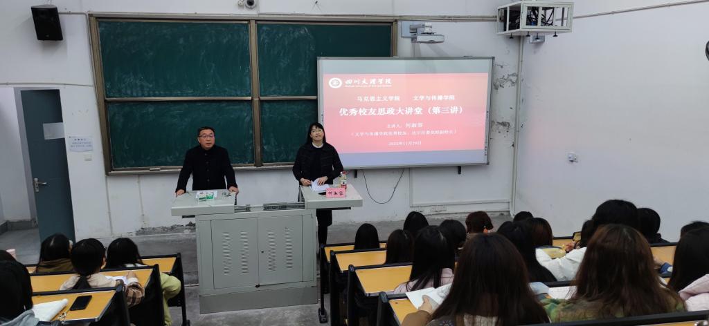 11月29日下午,万象城与文学与传播学院联合举办第三期“优秀校友思政大讲堂”。文学与传播学院优秀校友、达川区委党校副校长何淑容以《传承红色基因 赓续精神血脉——“飞夺泸定桥”的时代价值与启示》为题,为文学与传播学院汉语言文学专业同学、学生党支部党员及入党积极分子代表做了一堂精彩的讲座。awc777万象城娱乐官网党委书记刘春辉主持讲座。