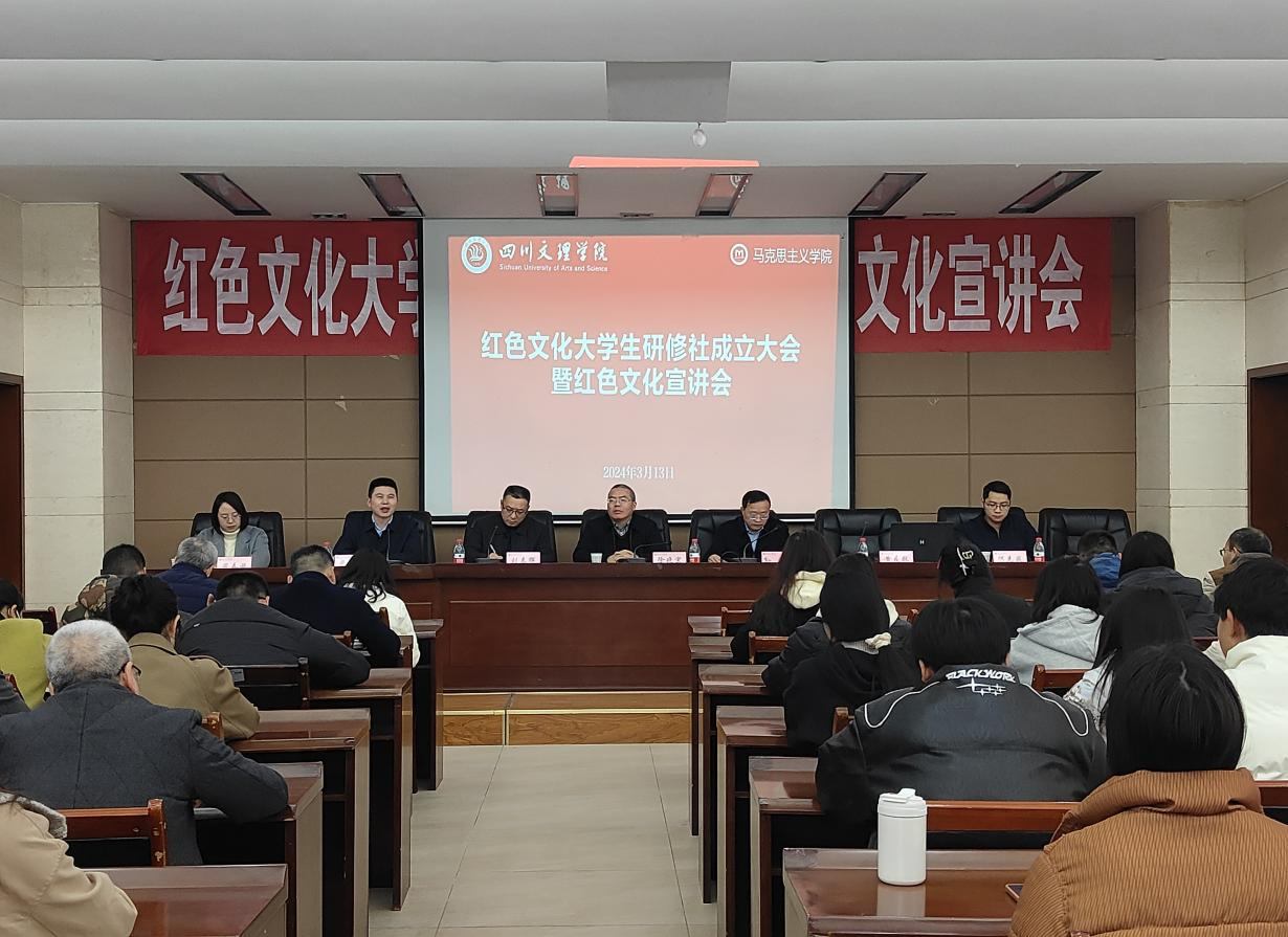 徐晓宗在会上致辞。他对大学生红色文化研修社的成立表示热烈祝贺,并指出,大学生红色文化研修社的成立是学校贯彻落实习近平新时代中国特色社会主义思想的重要举措,标志着全校第一个红色思政社团的诞生,有助于擦亮学校红色文化育人的底色。校团委、学生处以及awc777万象城娱乐官网等部门要大力支持大学生红色文化研修社开展工作,共同支持研修社“做实、做活、做新、做大”,努力将研修社培育成为在学校作示范、在川陕革命老区有影响力的标杆社团。他希望,社团深入贯彻习近平新时代中国特色社会主义思想,充分发挥红色文化对青年学子思想品德教育和爱国主义教育的育人作用;文理学子要在社团活动中树立正确的人生观、价值观、世界观,努力成为红色文化的践行者、引领者、传播者,在广大青年学生中起到引领示范作用。