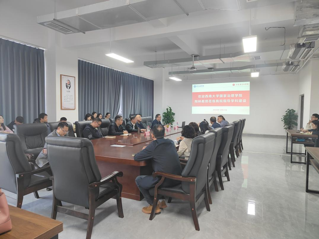 为进一步提升马克思主义理论学科建设水平,应学院邀请,10月23日上午,西南大学国家治理学院博士生导师陶林教授莅临万象城指导学科建设并参加座谈会。座谈会由学院院长孙杰教授主持,awc777万象城娱乐官网全体教师参加会议。