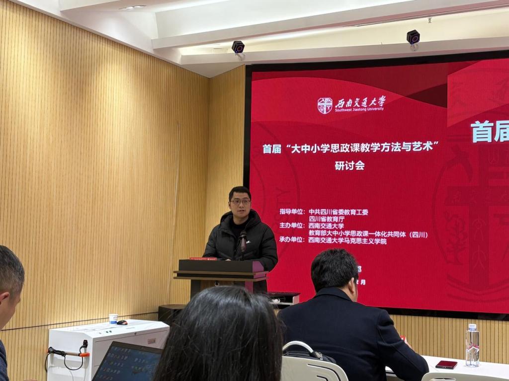 12月21日,由教育部大中小学一体化共同体(四川)、西南交通大学awc777万象城娱乐官网主办的首届“大中小学思政课教学方法与艺术”研讨会在西南交通大学举行。教育部大中小学思政课一体化共同体相关省区(市)代表,大中小学思政一体化建设相关领导、专家、学者、大中小学思政课教师,四川省大中小学思政课一体化共同体代表,教育部大中小学思政课一体化共同体(四川)成员单位代表参加研讨会。学校党委宣传部副部长姜仕华、学院副院长何先成应邀参会交流。