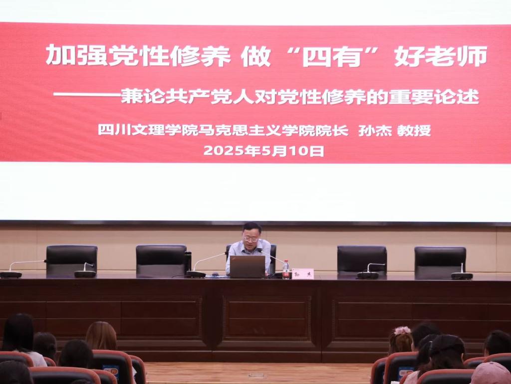 孙杰以《加强党性修养 做“四有”好老师——兼论共产党人对党的建设的重要论述》为题,从党性修养的内涵,共产党人对加强党性修养的重要论述,加强党性修养、做“四有”好老师三个方面进行系统阐述。党性修养是共产党员在政治、思想、道德品质和知识技能等方面自我提高的过程。共产党人加强党性修养经历了革命烽火中的思想奠基、系统理论的破茧成蝶和改革开放中的守正创新三个阶段。加强党性修养和做“四有”好老师是相辅相成、相互促进的过程,新时代的广大教师要坚定理想信念、涵养道德情操、积淀扎实学识,胸怀仁爱之心,以党性修养促进自身综合素养提升,为党育人、为国育才,为培养德智体美劳全面发展的新时代社会主义接班人努力奋斗。