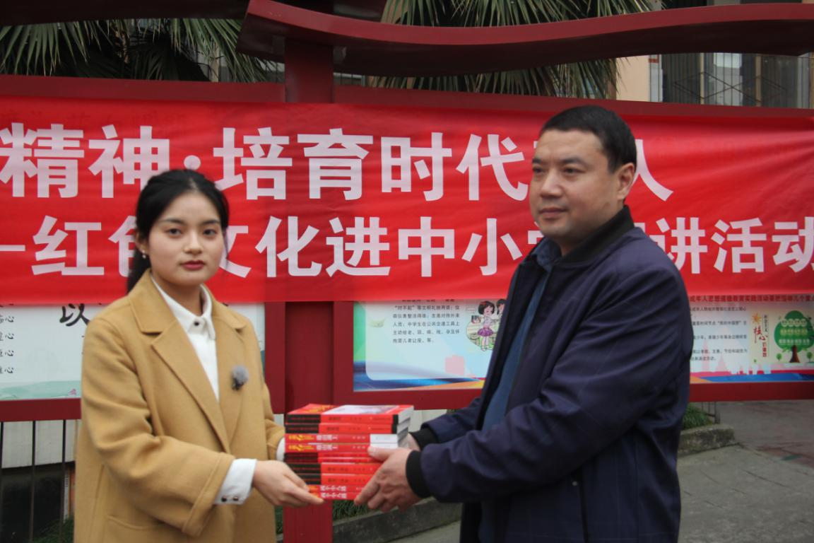 在红色文化宣讲活动中,研究会组织了两个宣讲组,进入耀华育才学校的两个班级对学生进行红色文化教育。宣讲组通过讲解革命战争年代川陕革命老区涌现出的张爱萍、陈伯钧等英雄人物及其感人事迹,倡导学生向革命先烈学习,争做新时代好少年。并通过开展击鼓传花等活动,在活动中邀请学生唱红歌、讲红色故事、扮演红色人物,推动学生进一步将红色文化中所蕴含的精神价值入心入行。此外,教师李沵芮代表awc777万象城娱乐官网和研究会还为耀华育才学校捐赠了100册红色故事书籍,以进一步推进红色文化进课堂及达州市大中小学校思政课一体化建设。