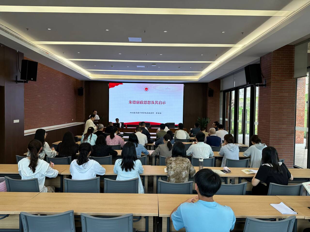 4月20日,学院赴张思德干部学院和朱德故里研修学习。在张思德干部学院,蔡富强老师以《朱德廉政思想及其启示》为题,系统全面地阐释了朱德廉政思想的形成条件、主要内容和启示价值。朱德是新中国第一任中央纪委书记。蔡老师指出,我们要深入学习朱德同志的廉政思想,坚持党的全面集中统一领导,构建具有中国特色的纪律监督体系,依法治国,从严治党,加强党性修养和纪律作风建设,明大德、守公德、严私德。
