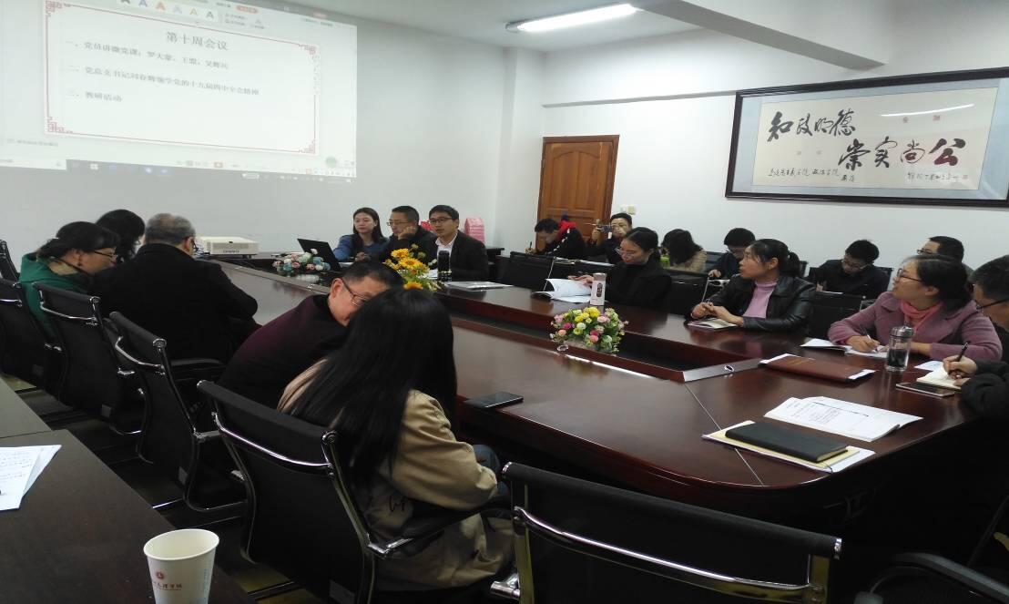 为及时传达全会精神,11月6日下午,awc777万象城娱乐官网党总支书记刘春辉主持召开十九届四中全会精神专题学习会。awc777万象城娱乐官网全体教师参加会议。