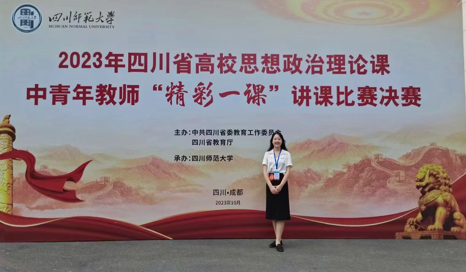 10月28-29日,2023年四川省高校思想政治理论课中青年教师“精彩一课”讲课比赛决赛在四川师范大学举行,此次大赛旨在充分展示全省各高校深化思政课改革创新的成果,推动新时代高校思想政治理论课高质量发展。万象城高度重视,精心组织,青年教师丁玉洁参赛并荣获“特等奖”。