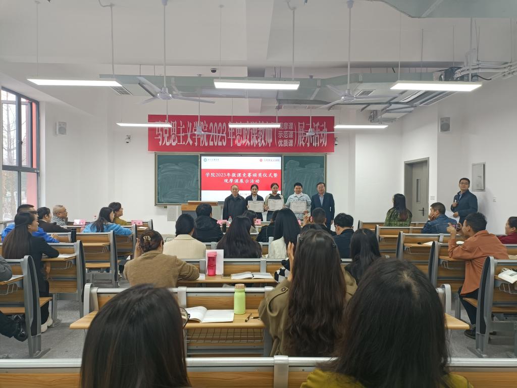 孙杰院长、汤海生副教授、邓丽老师分别以《完整、准确、全面贯彻新发展理念》、《领悟人生真谛,把握人生方向》、《追求远大理想,坚定崇高信念》为主题,进行了观摩课讲课和教学经验分享。周婷婷、王晴两位青年教师对三位老师授课作个人感悟分享,表示受益匪浅。