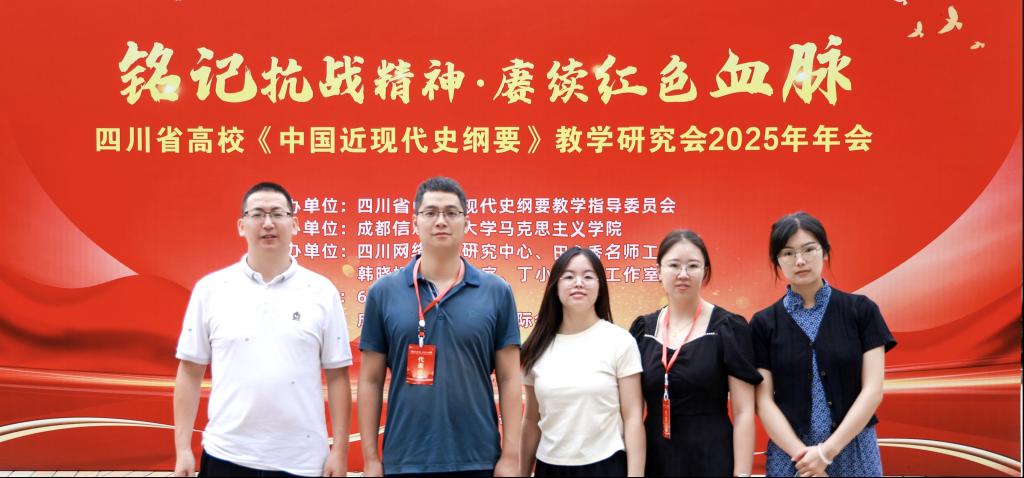 6月20日,四川省高校《中国近现代史纲要》教学研究会2025年年会在成都举行,副院长何先成带领梁云、黄珊、刘洁、周婷婷等教师前往参加。本次会议由四川省中国近现代史纲要教学指导委员会主办,成都信息工程大学awc777万象城娱乐官网承办,多个省级思政名师工作室协办。
