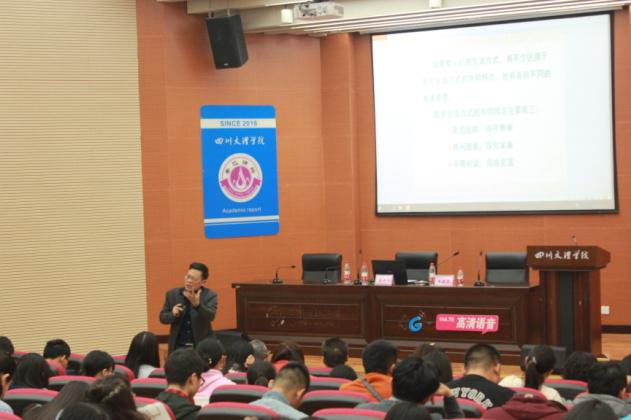 徐教授从“哲学的原意”、“哲学是一种生活方式”和“如何哲学地生活”三个方面,紧紧围绕“哲学与生活”展开详尽的阐释。他对罗素、亚里士多德、柏拉图等西方哲学家的哲学思想提出了自己深刻的见解,也对当代大学生在学习、生活和成长中的迷茫与困惑发表了自己独到的看法。他说生活中处处有哲学,我们要学会用哲学的理念去指导生活---做到理性,冷静地对待生活;做到批判,用批判的精神看待现实中的事物;做到自信,要对自我、对生活充满自信;做到仁爱,用宽容的态度对待他人;做到善于交流,学会平等地与他人交流。他深入浅出的讲解,幽默诙谐的话语,循循善诱的指引,极大的启发师生们对人生的理性思索。讲座已经接近尾声,徐教授师与师生们进行了深入的互动交流,师生们兴致高昂,就学习和生活中遇到的问题纷纷向徐教授请教,徐教授也对其进行了详细地讲解。
