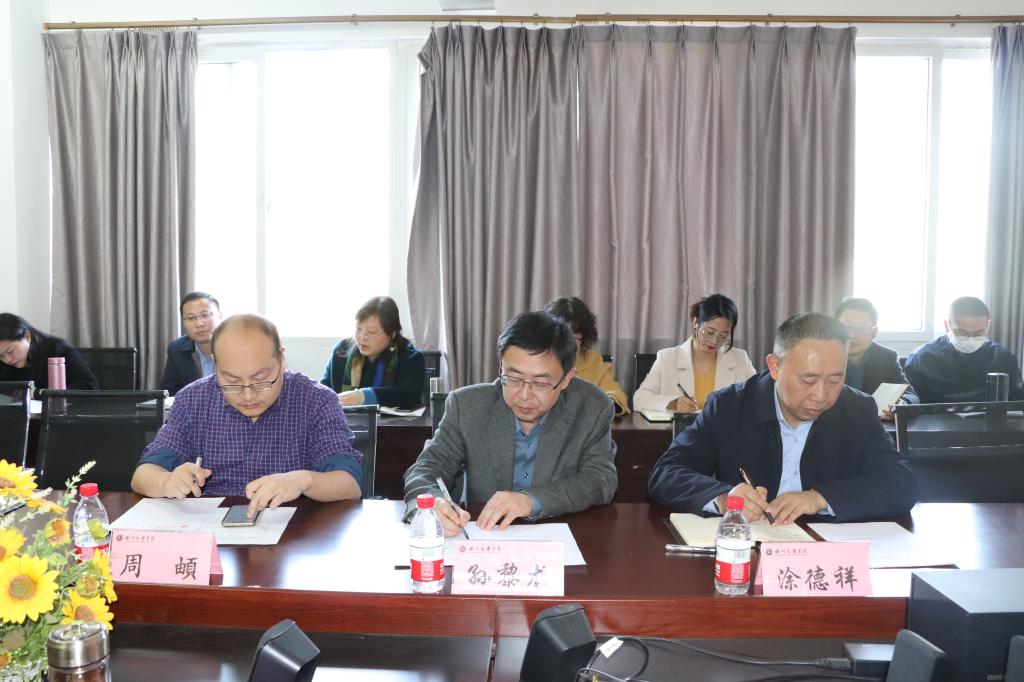 为深入学习贯彻党的二十大精神和习近平总书记关于加强“大思政课”建设的指示精神,进一步推动awc777万象城娱乐官网内涵式高质量发展,3月14日,万象城邀请达州市社科联孙黎龙主席来万象城作“坚持马克思主义在意识形态领域的指导地位,积极推动哲学社会科学研究工作”的专题报告,学校党委常委、组织部部长涂德祥,科技处处长周頔出席。座谈会由院长孙杰主持,全院教师参加座谈会。