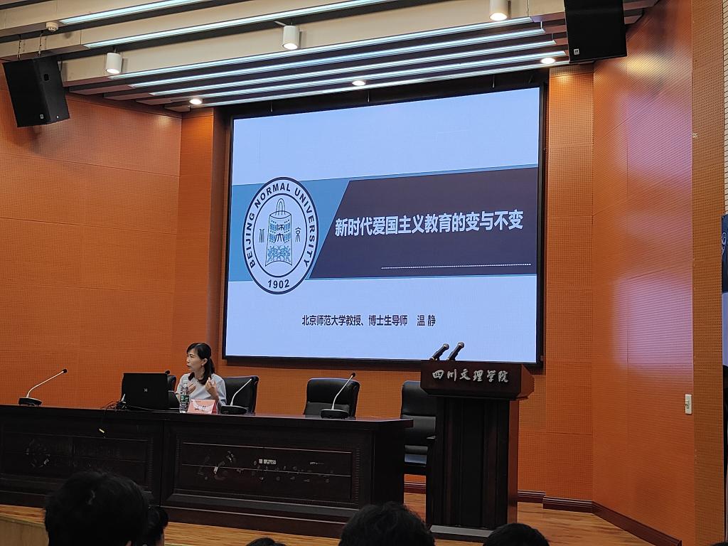 5月29日晚,应学院邀请,北京师范大学awc777万象城娱乐官网温静教授来我校作“红漫巴山讲堂”系列讲座第三讲——《新时代爱国主义教育的变与不变》。讲座由学校党委常委、副校长徐晓宗主持。
