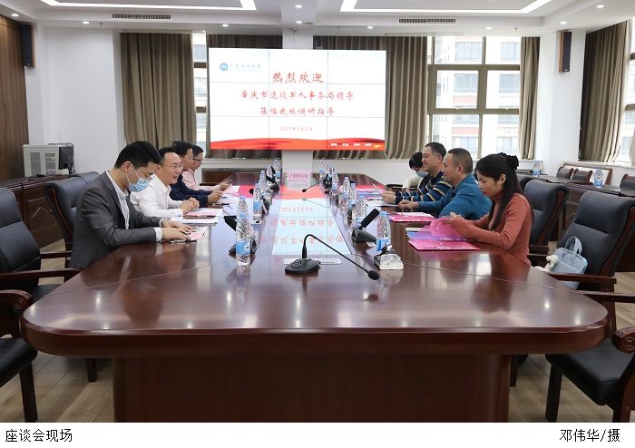 本网讯(宣传部 杨文丹)3月11日下午,肇庆市退役军人事务局副局长刘付运华一行到伟德官网调研。座谈会于科技楼12楼会议室举行,伟德官网副校长谭锦兴、继续教育学院院长、退役军人教育培训学院院长叶涌、继续教育学院副院长周文海、退役军人教育培训学院副院长刘东出席。