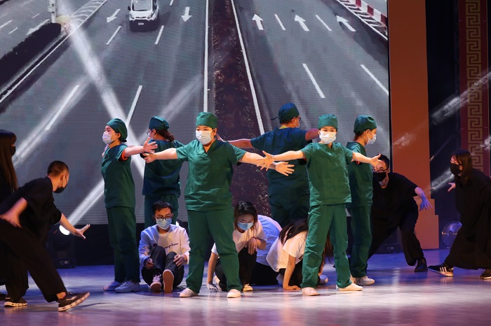 晚会分为相望来路、相守今岁、相伴而行三个篇章,各院系以合唱、舞蹈、情景剧等形式带来一系列精彩的表演,用歌声畅想希望,用舞姿描绘未来。工业自动化系将平凡教学生活中的点滴温暖融入朗诵与合唱中,以一首《星辰大海》点燃了全场氛围。艺术系带来了一场别具一格的服装走秀,并采用情景剧的形式将观众带入艺术馆内名画的故事,幽默诙谐的剧情、精彩的演绎将本场晚会的气氛推至高潮。汽车系以校园光影为主题,通过幕布投影的方式重演校园生活,感恩遇见广理人。马克思主义学院围绕“众志成城,疫过天晴”,以动人的抗击疫情故事为主线,再现医护人员不惧艰险的感人事迹。
