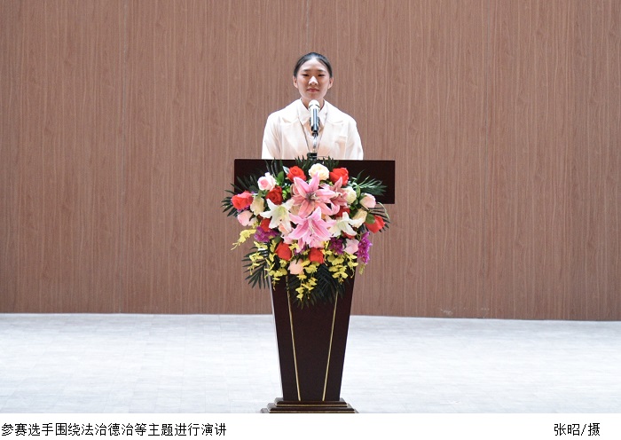 经过各院系的层层选拔,此次共有11位选手入围决赛。参赛选手按照抽签顺序依次上台演讲。参赛者衣着端庄,围绕法治德治、知法守法、戒烟戒毒、知行合一等主题,通过列举身边的事例娓娓道来,声情并茂,充分展现了当代大学生知礼守法,讲文明树新风的青春风貌。最终,会计学院的梁怡婷同学夺得本届大赛一等奖,二等奖由工业自动化系赵子毅同学获得,汽车工程系韦一达同学获得三等奖。校学生会沈玥玥、艺术系刘锦燕、电气与电子工程学院张相宇、外国语学院陈颖怡、建设学院彭秋丽、经济管理学院李松蔓、体育系金翰韬、信息技术学院蔡宜轩分别获得优秀奖。张东生书记、张宗珊副书记、黎会友副书记、廖振宇部长分别为获奖者颁奖。