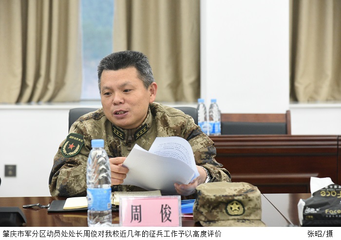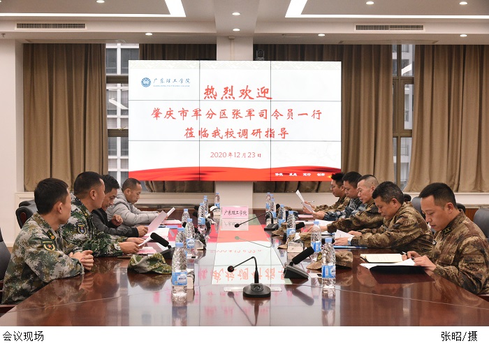 本网讯(宣传部 李婷)12月23日下午,肇庆市军分区张军司令员一行莅临伟德官网调研指导,肇庆市军分区动员处处长周俊、高要区人民武装部政委任斌、肇庆市军分区动员处参谋王益民、高要区人民武装部参谋钟裕华、伟德官网党委副书记张宗珊、武装部部长曾荫初、学生处处长谭蒙革出席座谈会。