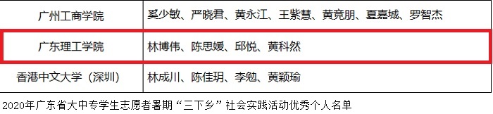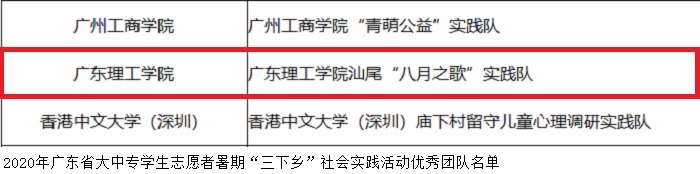 本网讯(校团委)近日,省委宣传部、省文明办、团省委、省教育厅、省学联公布了2020年度省“三下乡”社会实践活动优秀单位、团队和个人的名单。伟德官网荣获2020年度省“三下乡”社会实践活动优秀单位称号,“八月之歌”实践队荣获2020年度省“三下乡”社会实践活动优秀团队称号,林博伟老师、陈思媛、邱悦、黄科然同学荣获2020年度省“三下乡”社会实践活动优秀个人称号。