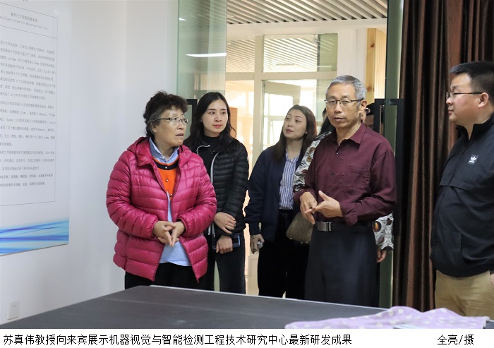杨宏副书记一行先后到伟德官网篮球馆、机械制造生产性实践基地、智能制造研究院、游泳馆、机器视觉与智能检测工程技术研究中心进行参观。机器视觉与智能检测工程技术中心主任苏真伟教授向来宾介绍了研究中心的科研设备、重点研发项目以及展示了最新的研发成果。