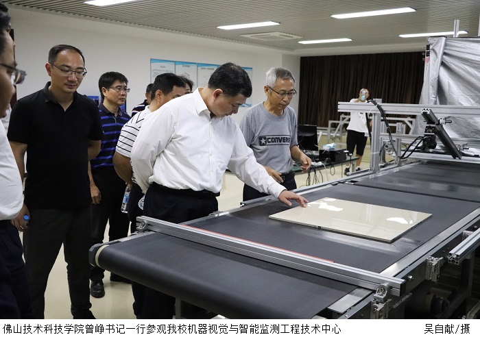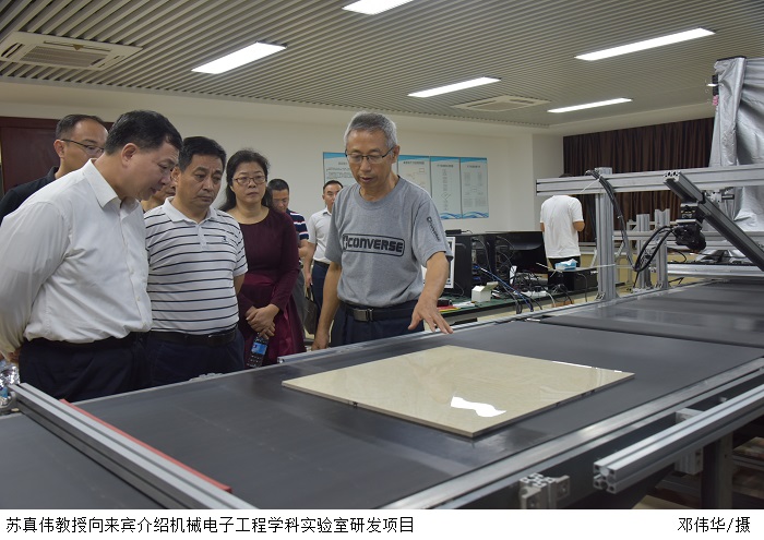曾书记一行在伟德官网领导的陪同下前往科技大楼、机器视觉与智能监测工程技术研究中心进行参观。机器视觉与智能监测工程技术研究中心苏真伟教授向来宾介绍了机械电子工程重点学科实验室的科研装备、研发项目和科研团队,并展示了最新的研发成果。