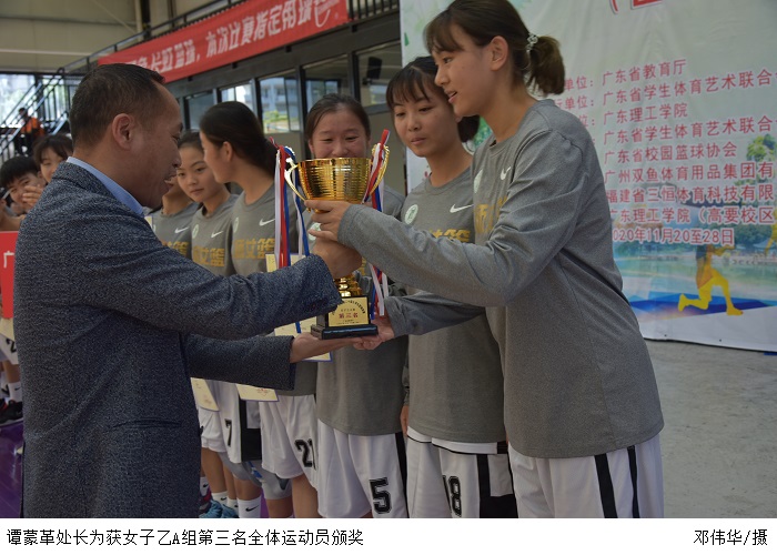 本网讯(校报记者 赵旖昕 实习记者 钟杉/黄欣怡)11月27日上午,由伟德官网承办的广东省第二十届大学生篮球联赛女子(乙A组)圆满落幕,并现场举行颁奖仪式。