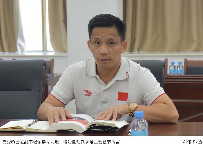 会上,党委黎会友领读了《习近平谈治国理政》第三卷中的“我将无我,不负人民”章节内容。这是习近平总书记在会见意大利众议长菲科时的谈话要点,充分显示了大国领导人的自信和担当。