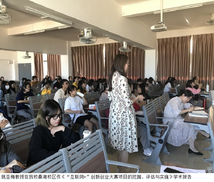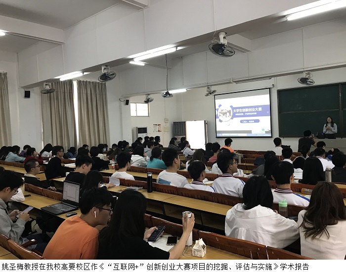 姚圣梅教授在伟德官网高要校区、鼎湖校区为创新创业先锋班同学们作了《互联网+”创新创业大赛项目的挖掘、评估与实施》学术报告。