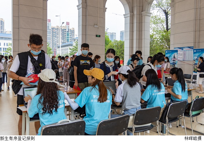 本网讯(校报记者 巫凯欣/钟思莹/陈怡颖/郑彦逸/林晟任/李诗晴)9月20日,校园内生机盎然,师生们兴高采烈,2020级本科新生共7601人来校报到。党委副书记张宗珊、招生办主任谢桂袖、相关部门负责人到场迎接新生。