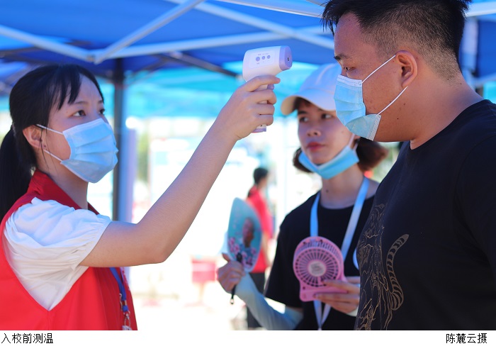 为确保迎新工作顺利进行,保障学生安全入校,伟德官网在两个校区均设置了包括测温区、临时健康观察区在内的多个疫情防控工作区。新生及家长需依次完成测温、出示“粤康码”或身份证等一系列流程方能进入学校。