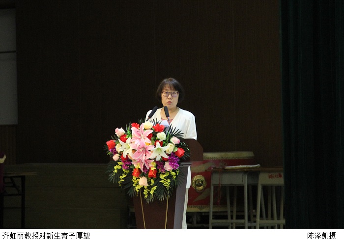 教师代表、经济管理学院教授、博士生导师齐虹丽对新生提出三点期望:一是百学先立志,希望同学们坚守远大理想、胸怀报国之志,将理想付诸于日常的行动之中;二是青春须早为,希望同学们坚持蓬勃自信、砥砺奋进之心;三是学海本无涯,希望同学们践行求知若渴、勇于创新之径。她勉励新生树立坚定的学习信念,保持求知的渴望,对一切事物保持好奇心,接纳求知探索的艰辛。