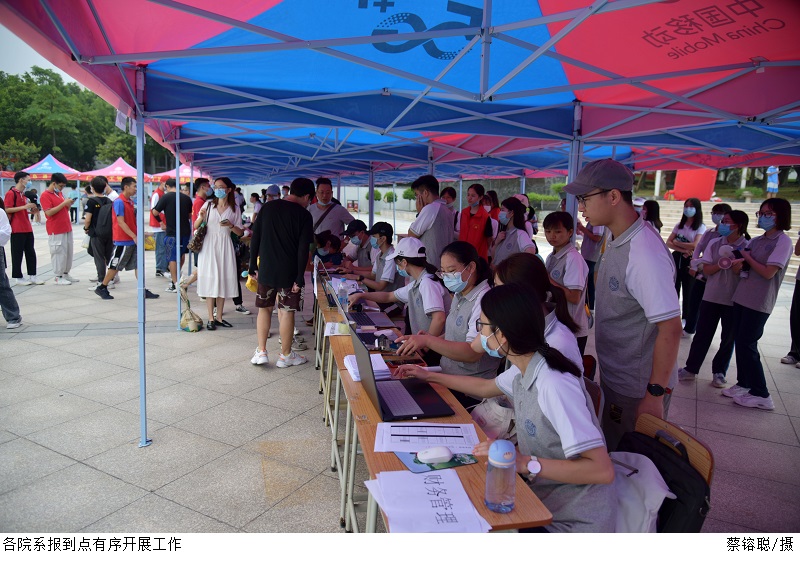 本网讯(宣传部 李婷/杨文丹)9月5日,2020级本科插班生陆续来校报到。党委副书记张宗珊,副校长谭锦兴及相关部门负责人到达现场,全校各部门、院系齐心协力、紧密配合,为新生入学保驾护航。