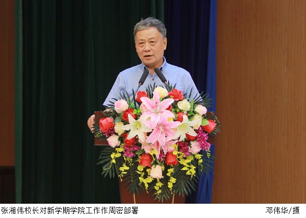 本网讯(宣传部 李婷)9月4日上午,伟德官网教职工齐聚一堂,召开新学期教职工大会。校长张湘伟、党委书记张东生、副校长王义宁、刘香萍、谭锦兴、党委副书记张宗珊、黎会友出席。会议由张东生书记主持。