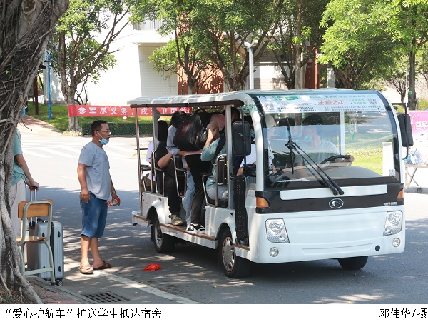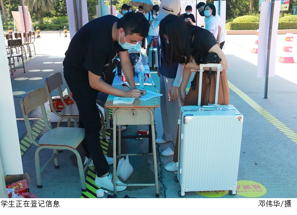 返校学生经校门口分流测温,出示“粤康码”及返校通知单等证明,登记信息后方可入校,校门口配备了“爱心护航车”将学生分批送往宿舍。此前伟德官网已顺利完成了两批学生返校工作,各接待点对接工作高效,顺畅。