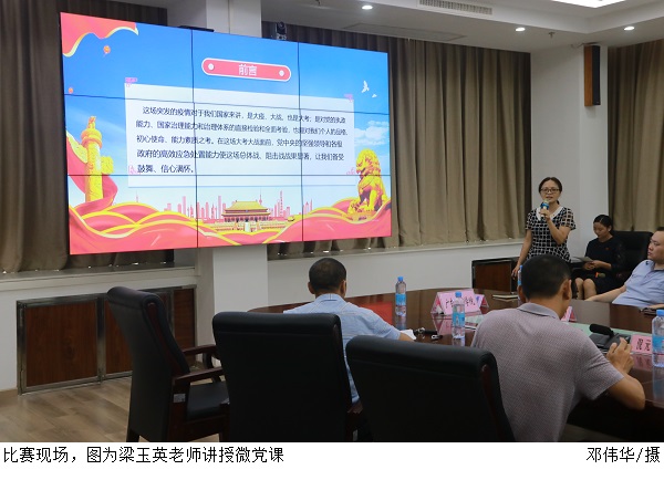 在微党课比赛环节,教师选手们结合赛前准备的课件,从我国当前国情、制度、党的领导及伟德官网在疫情期间等方面展开讲授了微党课。外国语学院吕丽红老师引用疫情中出现的带有中华文化印记的特色口号讲述了“传承、传播、传递 ——坚定文化自信,我们在行动”。 在红色故事讲述环节,选手们将党员们的故事娓娓道来,在故事主角的选取上,大多选用与现场观众贴近的人物及案例。会计学院郑春晓老师讲述了“刑场上的婚礼(肇庆版)”——肇庆党员植启芬和邓偶娟投身革命不惧牺牲,舍小家为大家的故事。选手们情绪饱满,表达自然,引用一个个生动案例丰富了微党课内容,现场掌声阵阵。