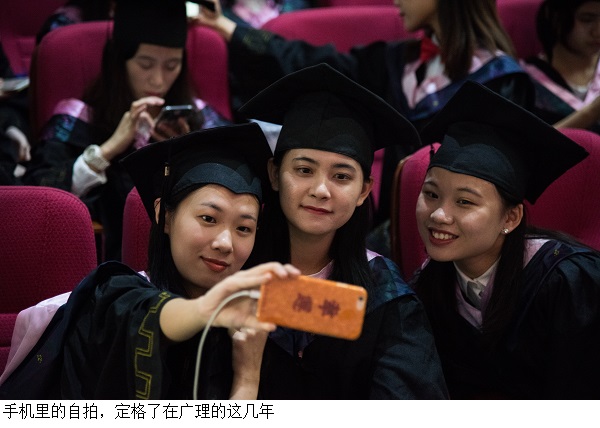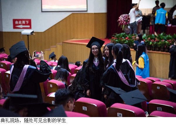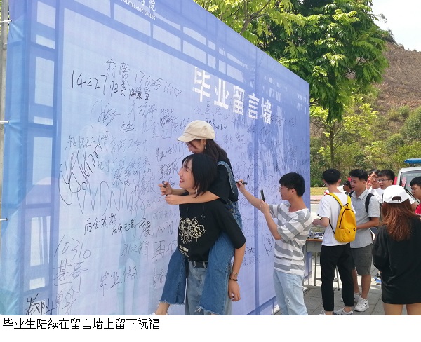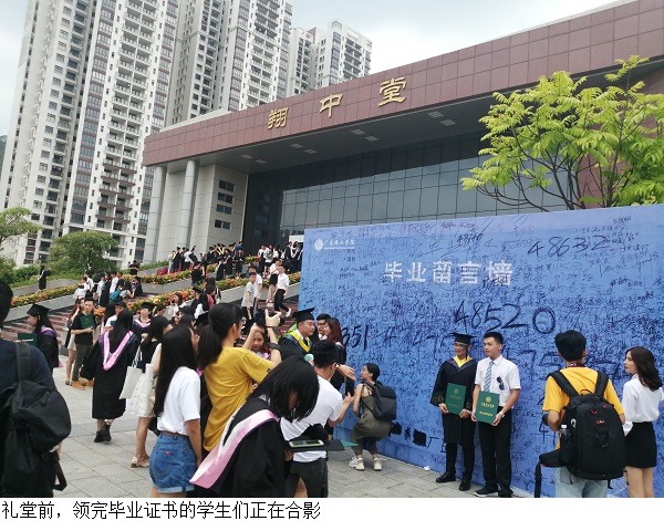 礼堂前坪设有毕业生拍照点和留言墙,身着学士服的毕业生们和亲友留下在广理的动人一笔。