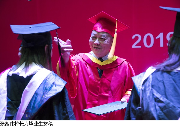 仪式上,主席台就座的各位领导为每一位毕业生亲手拨穗、颁发毕业证书和学位证书。