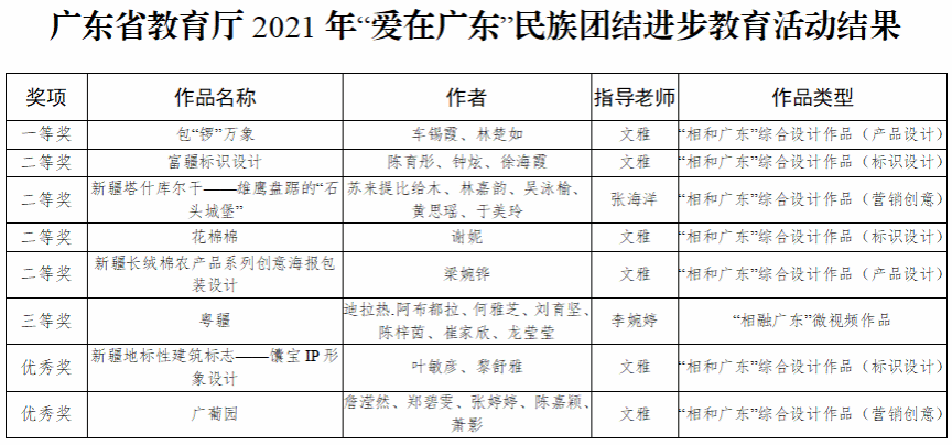 本网讯(宣传部 杨丽莎)近日,广东省教育厅公布2021年“爱在广东”民族团结进步教育活动结果,伟德官网多个作品获佳绩,获一等奖1项、二等奖4项、三等奖1项,优秀奖2项。