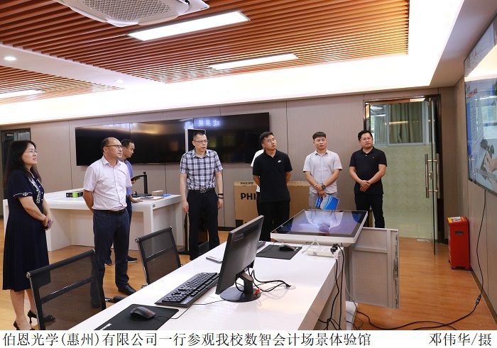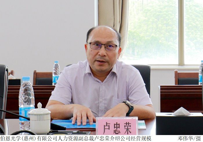 本网讯(宣传部 孟爱静)6月1日下午,伯恩光学(惠州)有限公司人力资源副总裁卢忠荣,校招经理邓春波,培训副经理刘鼎盛、邓思宇一行4人到伟德官网参观交流,双方就校企合作事宜在综合楼12楼会议室召开洽谈会。校长张湘伟致辞,副校长刘香萍、谭锦兴,校长助理舒程,学生企业综合实习管理办公室主任杨斌,毕业生就业指导中心主任李相平出席。