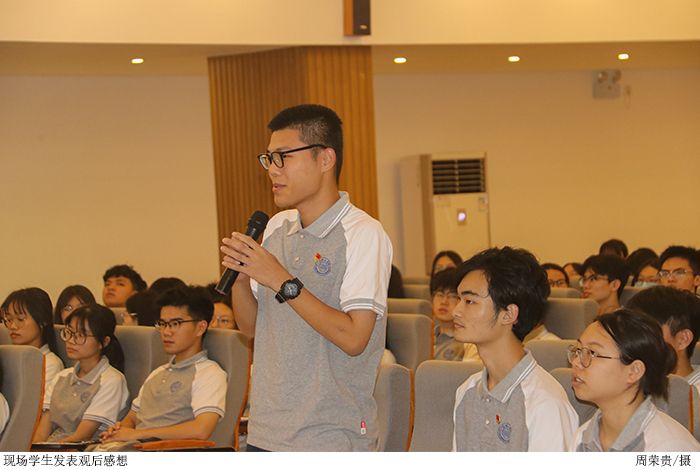 黎会友以“为什么要坚持文化自信?我们的自信哪里来?”揭开主题党课的序幕。通过三个视频的展播,他强调,第一、大学生要培养爱国情怀,树立正确的三观,我们要坚决抵制破坏祖国统一的言论,秉持祖国统一的信念;第二、理智参与艺术和文化活动,面对艺术和文化活动,大学生要避免因个人行为影响当地的社会秩序;第三、赓续中国科学家精神,用科学家精神勉励自我,提高自身素质。课堂中,在场学生积极参与互动,讲述自己的观后感,引起现场学生的共鸣与思考。