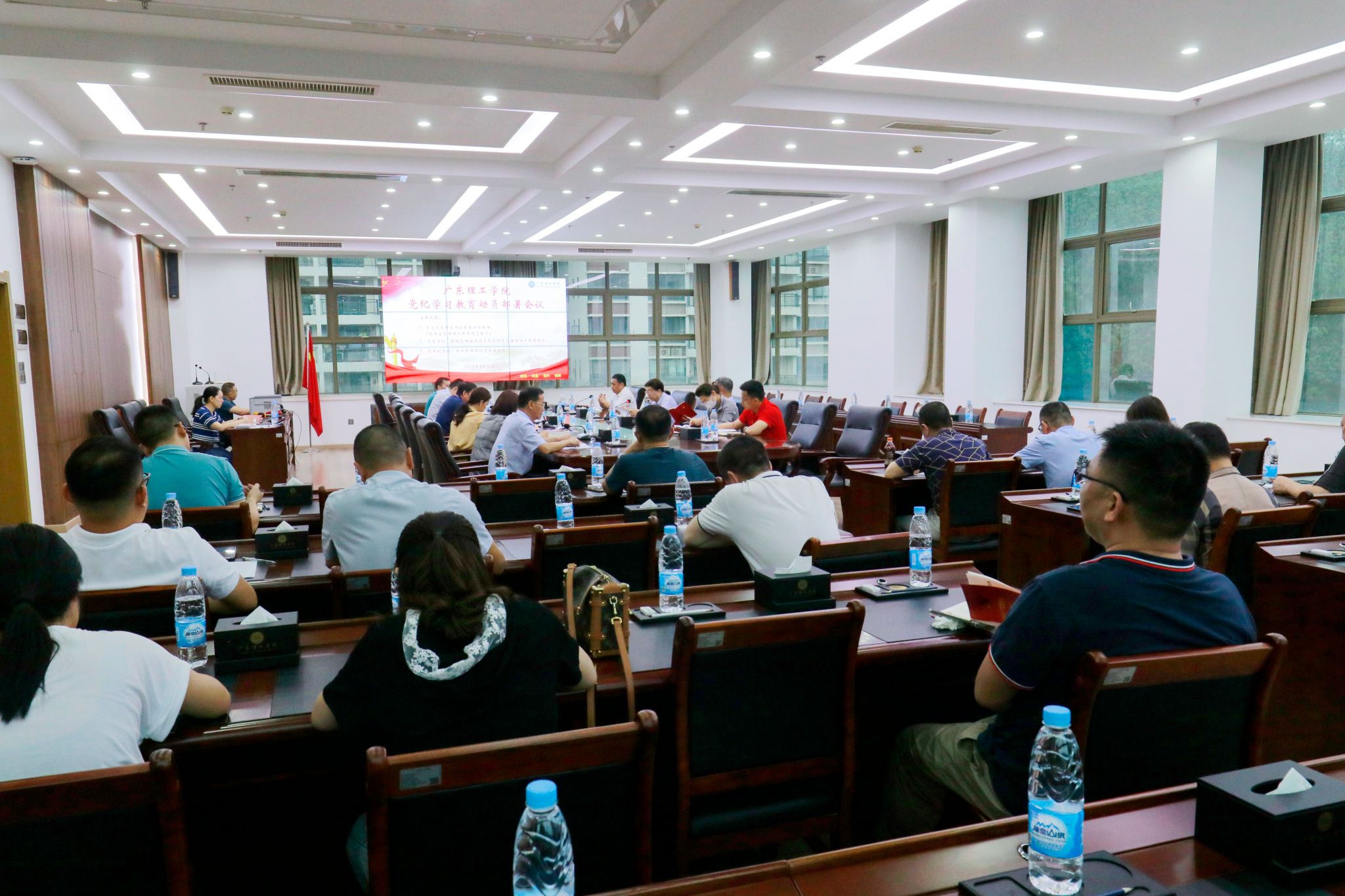 会议要求,要提高政治站位,深刻认识开展党纪学习教育的重要意义,推动各级党组织和领导班子从严抓好党的纪律建设,推动广大党员干部强化守纪,自觉以严明的纪律确保全党自觉同以习近平同志为核心的党中央保持高度一致,统一思想,统一行动,令行禁止,形成推进中国式现代化的强大动力和合力;要抓住学习重点,在学习贯彻《中国共产党纪律处分条例》上下功夫见成效,坚持逐章逐条学,结合实际学,抓好以案促学、以训助学,教育引导党员干部准确掌握其主旨要义和规定要求,进一步明确日常言行的衡量标尺,真正使学习党纪的过程成为增强纪律意识,提高党性修养的过程;要压实领导责任,学校及二级学院的领导班子和机关党员要带头学习,确保党员干部高质量完成党纪学习教育任务。要加强宣传引导,力戒形式主义,以良好的作风保证党纪学习教育走深走实。要坚持两手抓两促进,把开展党纪学习教育跟落实党中央的重大决策部署,完成学校的工作重点紧密结合起来,使党纪学习教育每项措施都成为促进中心工作的有效举措,切实防止“两张皮”,推动党纪学习教育取得实实在在的成效。