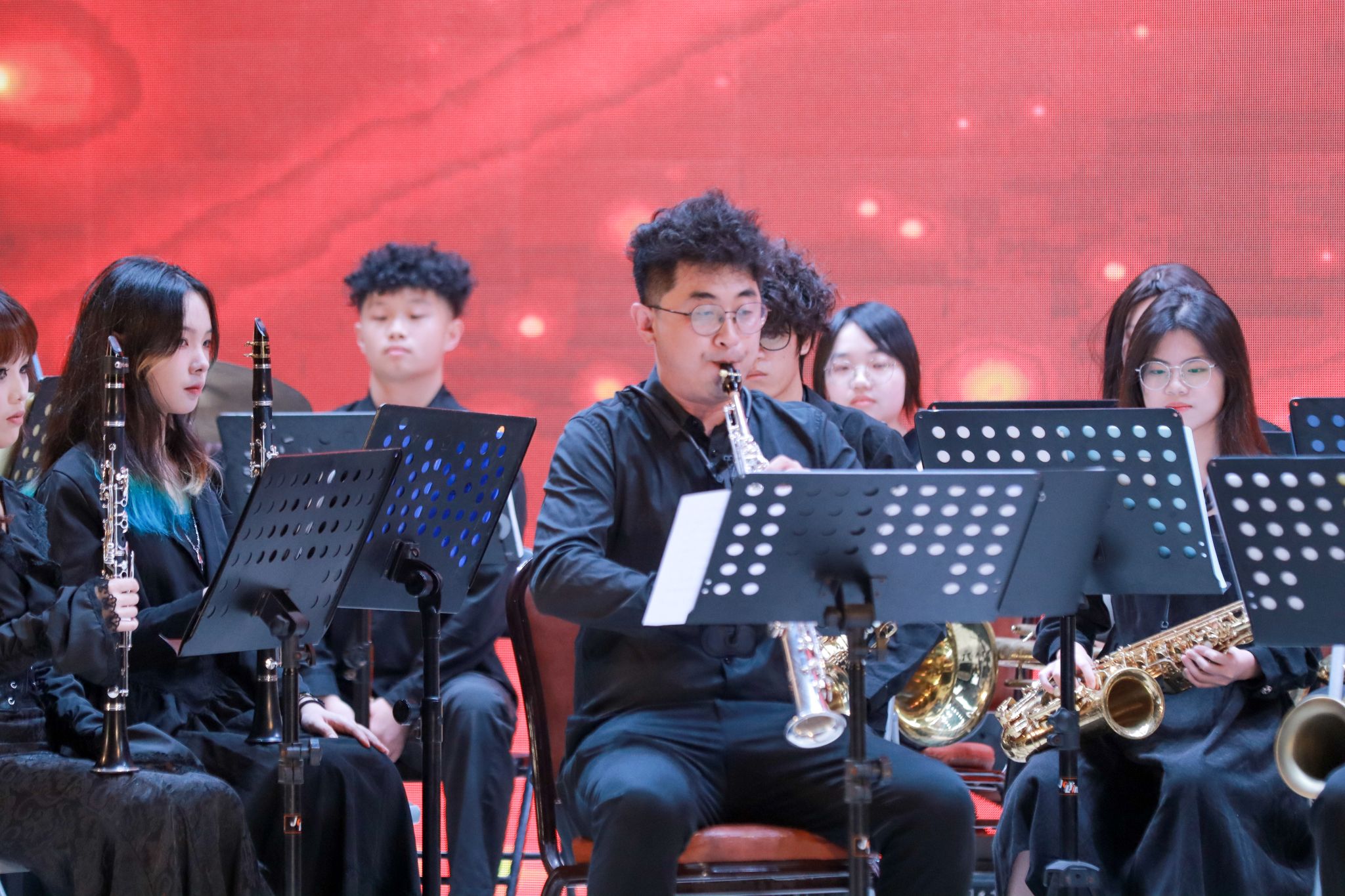 党委书记胡海建,党委副书记张宗珊、黎会友,党委组织部部长廖振宇、学生处处长谭蒙革、马克思主义学院院长赵宇宏、团委书记彭雪帆、各二级学院领导以及现场师生齐聚一堂,缅怀峥嵘岁月,重燃五四薪火。本次晚会采用“现场+线上直播”方式进行。