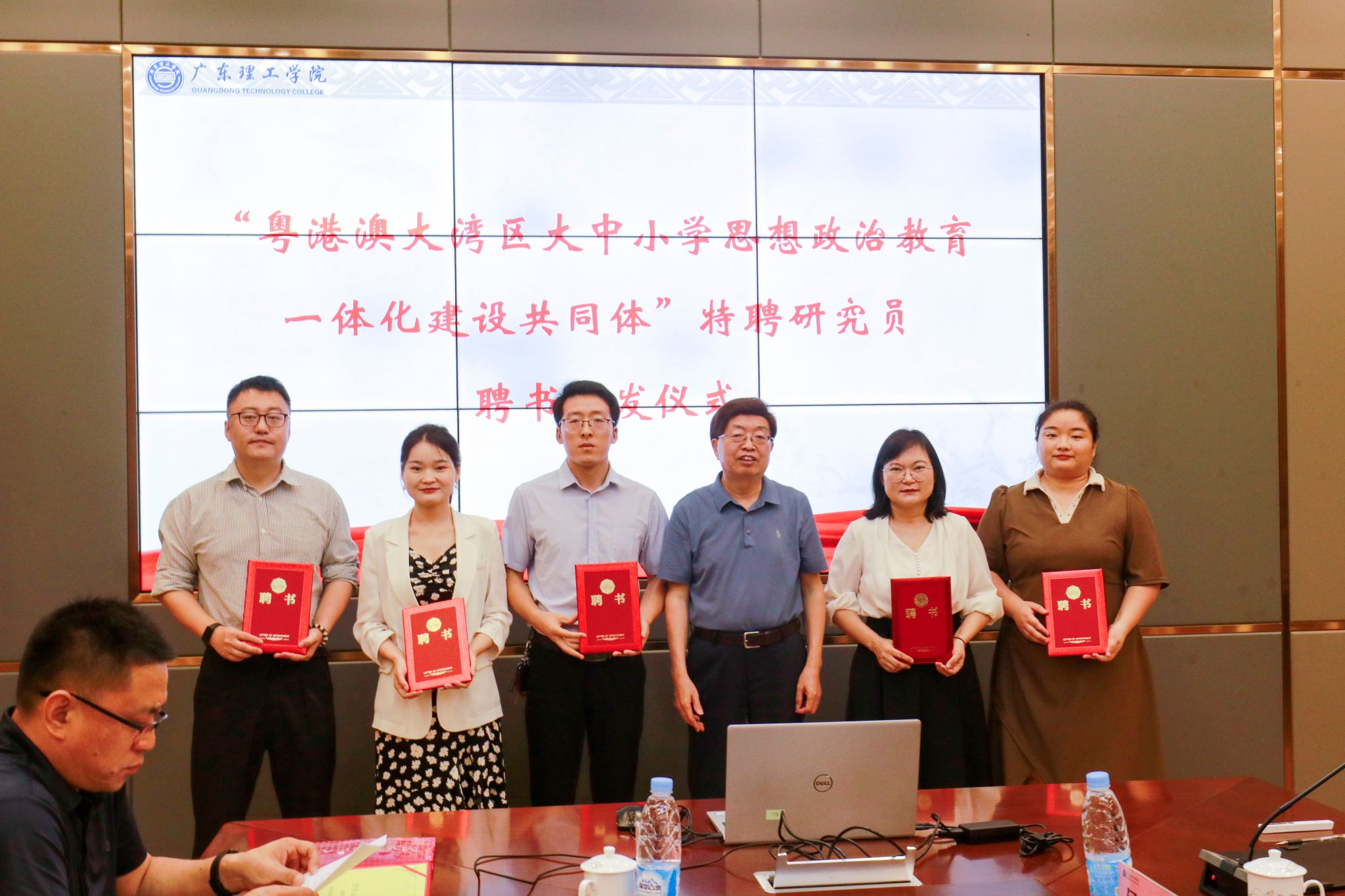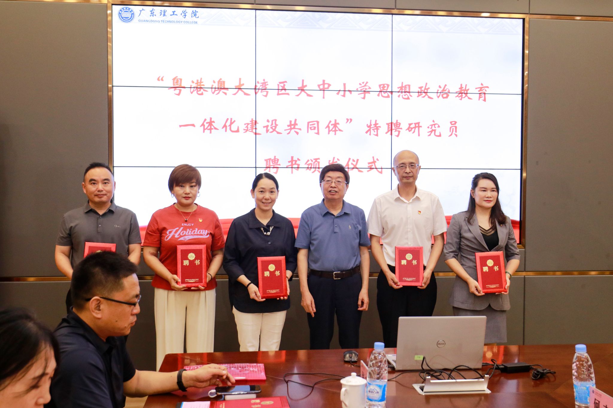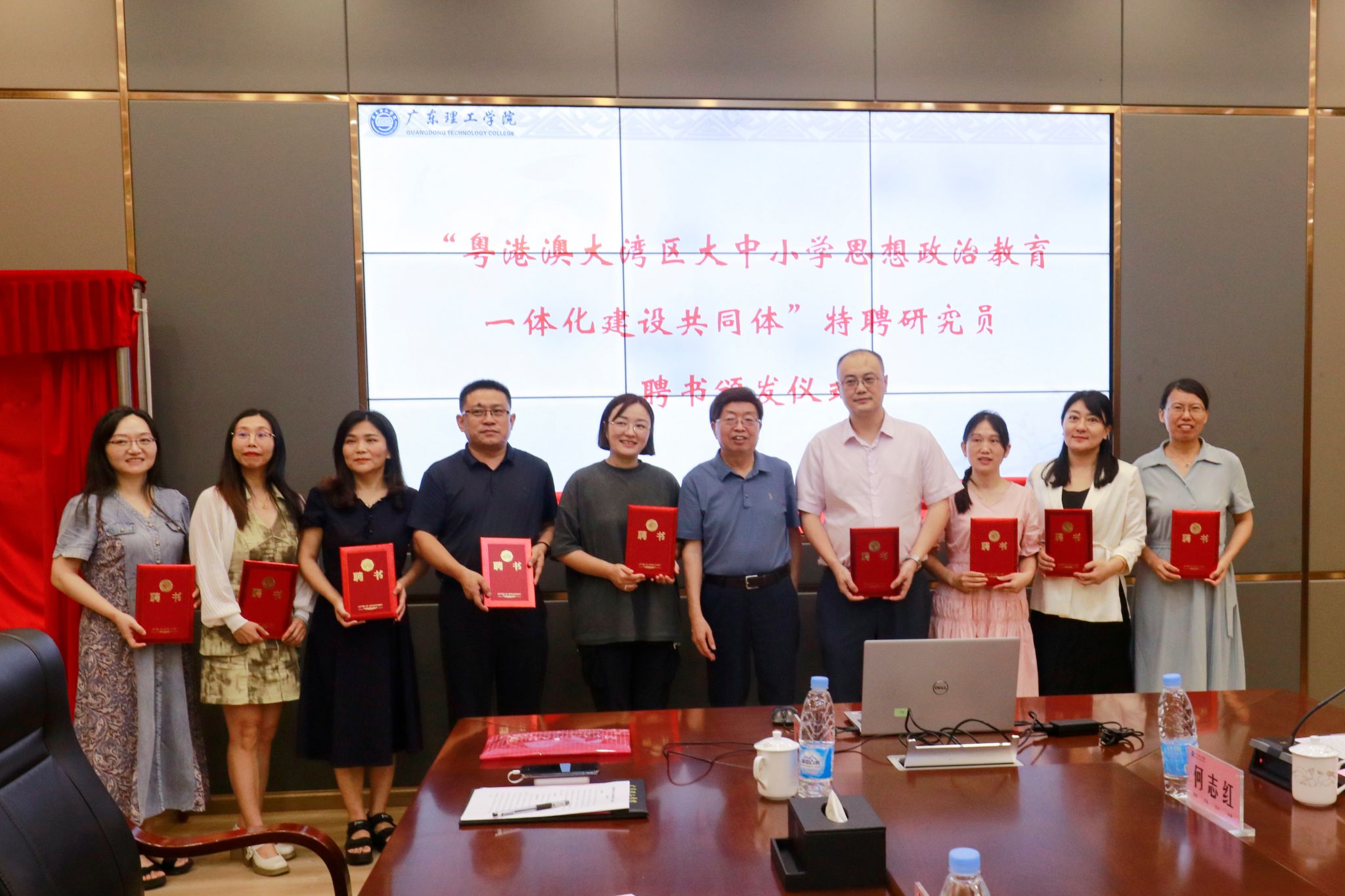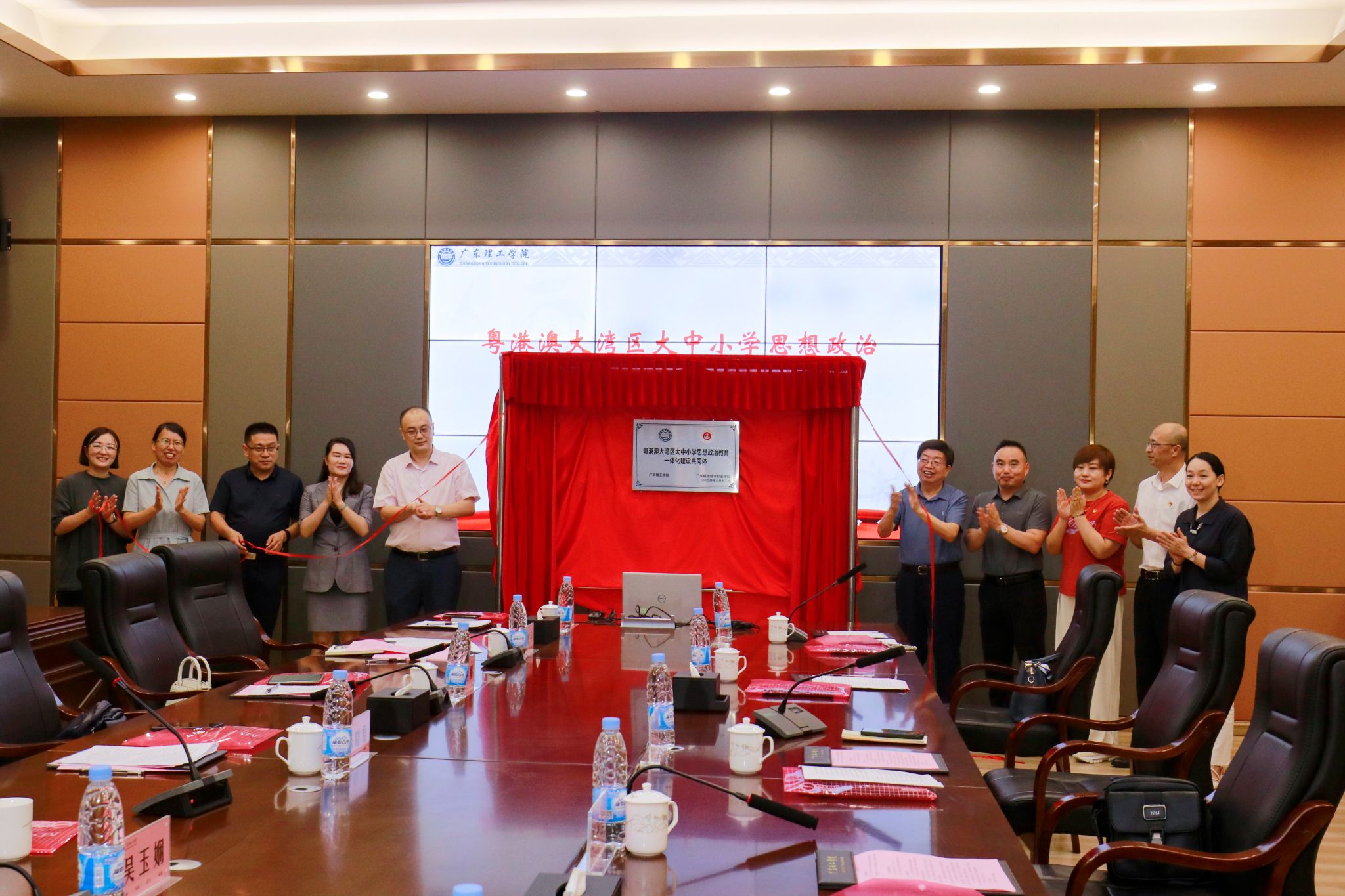 参会领导和嘉宾共同为“粤港澳大湾区大中小学思想政治教育一体化建设共同体”揭牌。