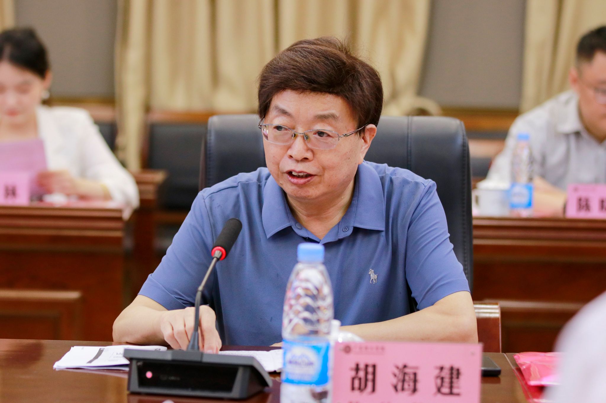 胡海建首先对与会嘉宾及教师代表的到来表示热烈欢迎,并就学校基本情况、会议内容、两校特色优势等方面进行介绍。他带领重温习近平总书记“3·18”重要讲话精神以及习近平总书记5月11日对学校思政课建设作出的重要指示,使与会人员更加明晰思政课建设内容、导向和实践措施。同时,他指出,下一步两校将在文化资源、师资队伍、思政资源、地域资源方面进行优势互补、资源共享,大力推进大中小学生思想政治教育一体化建设。