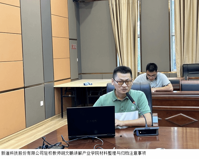 新道科技股份有限公司驻校教师胡文鹏分享了产业学院材料整理与归档的注意事项。