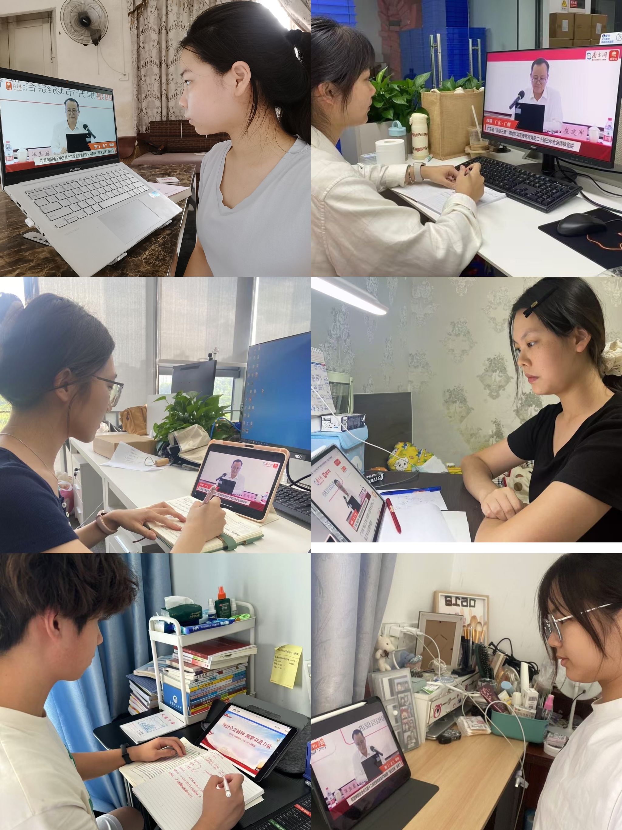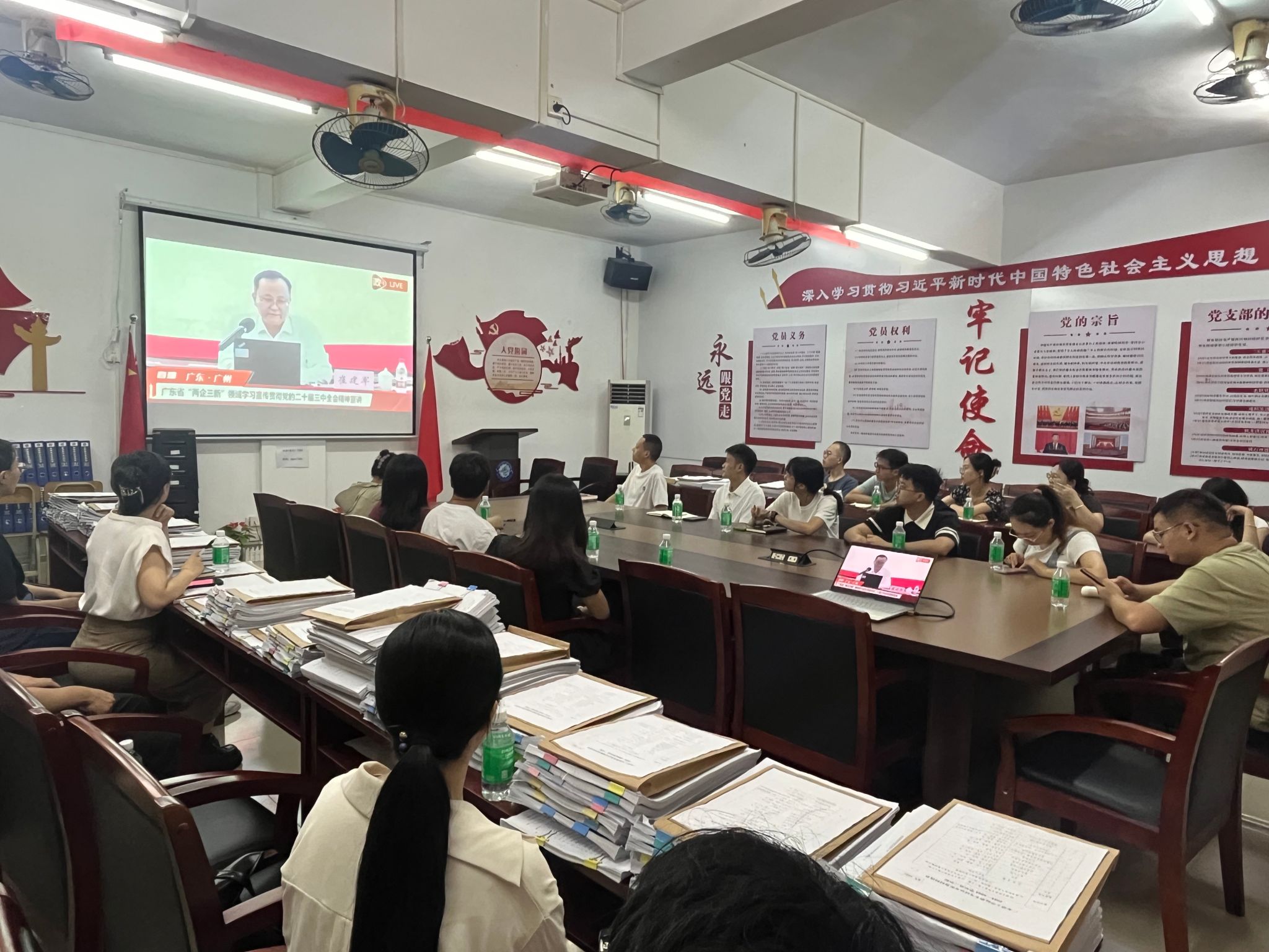 本网讯(宣传部)8月30日下午,广东省委社会工作部部长、省委“两新”工委书记宣讲党的二十届三中全会精神,对全省“两企三新”党组织和党员进行网络直播。学校党委理论学习中心组在综合楼12楼会议室集中观看宣讲直播,各党支部设分会场组织观看。