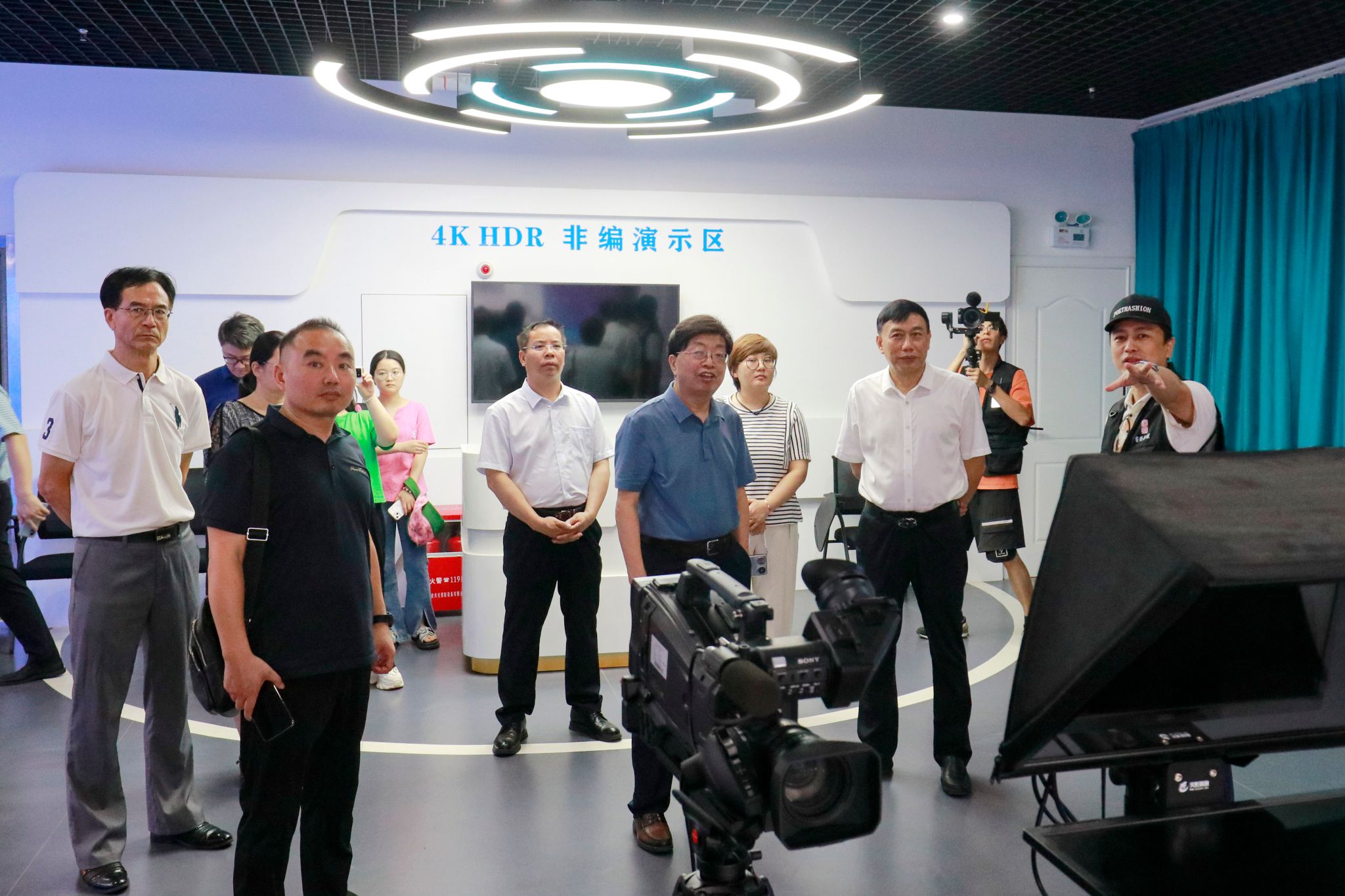 第三环节,双方参观了广东工商职业技术大学的校园电视台。电视台负责人详细介绍了其运行机制、团队建设及近期精品节目,展现了其在节目制作、新闻报道、文化传播等方面的显著成效。