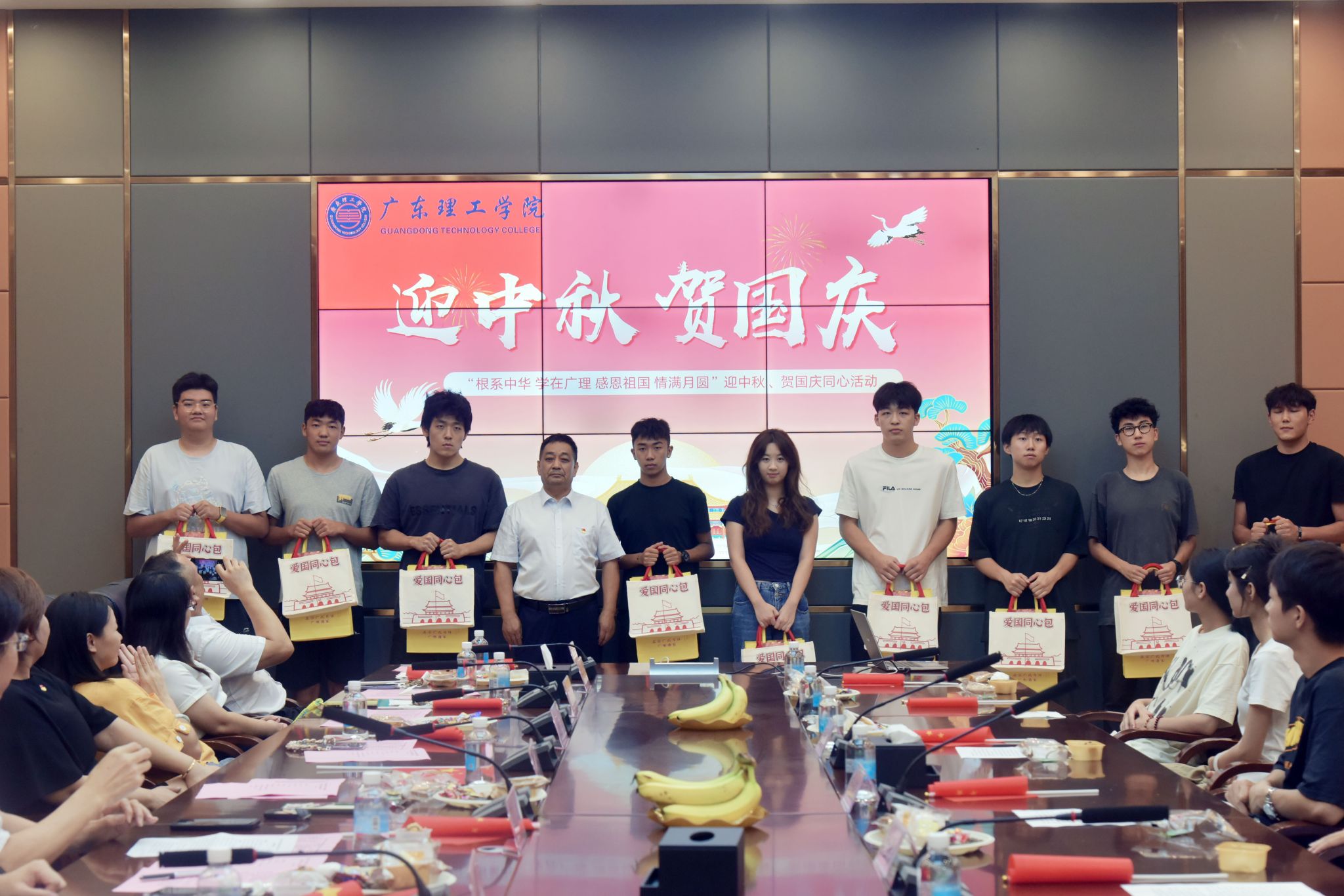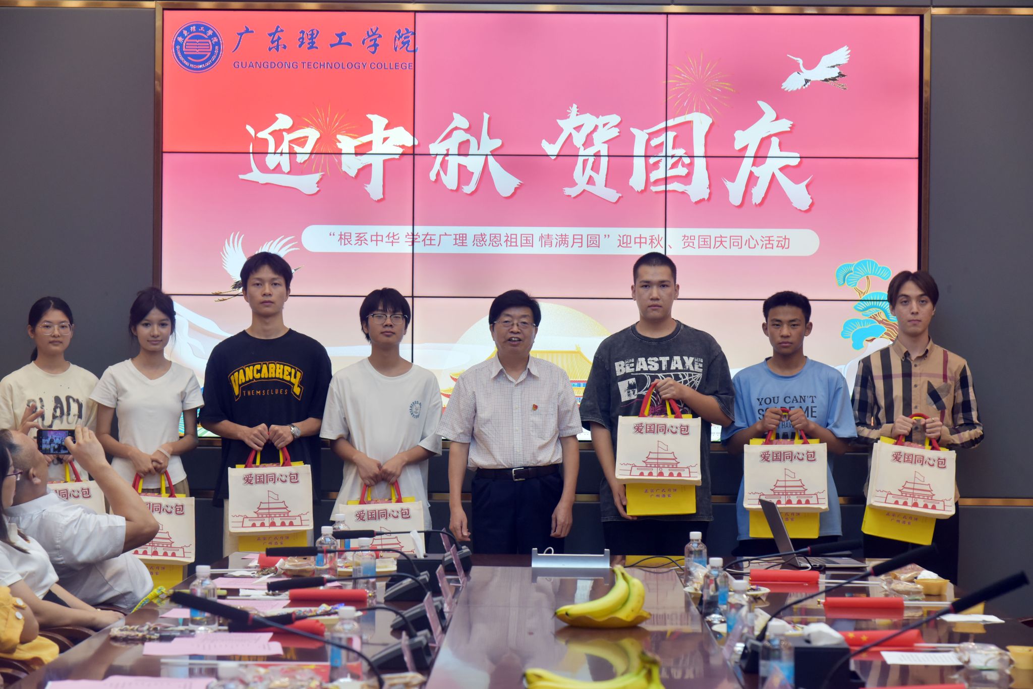 活动高潮部分,胡海建与张宗珊为学生们赠送了寓意深刻的“爱国同心包”,内含中国地图、国旗、月饼、毛笔、宣纸、笔记本,既体现了学校对学生的关怀,也寄托了对他们未来的殷切期望。