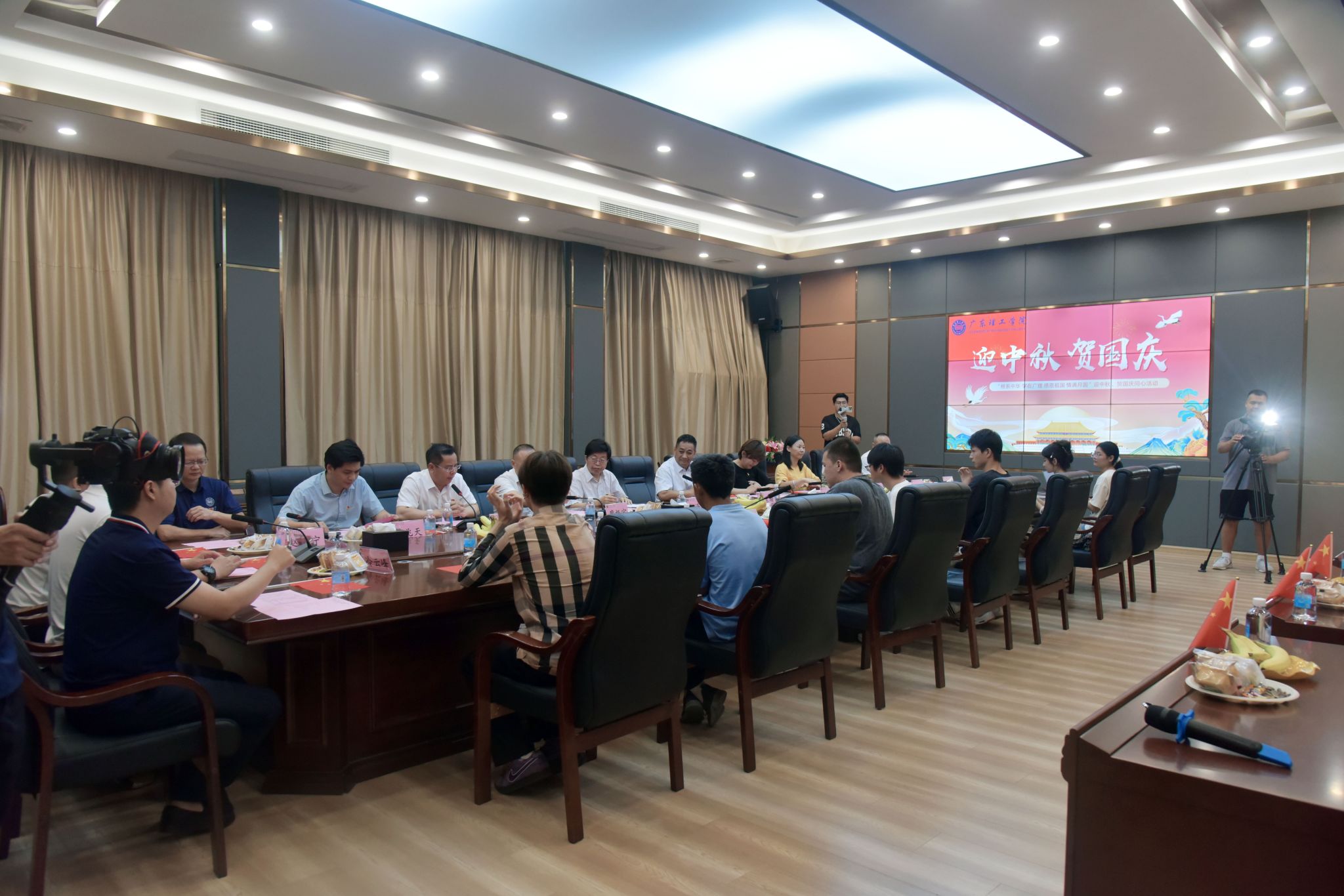 本网讯(宣传部)“月满中秋情更浓,团圆喜庆共天同。”9月17日,正值中秋佳节,伟德官网在行政楼一楼会议室温情举办了一场以“根系中华 学在广理 感恩祖国 情满月圆”为主题的迎中秋、贺国庆同心活动。学校党委书记胡海建、副书记张宗珊及党群系统相关部门负责人出席。来自港澳台、西藏、新疆等全国各地的16名学生代表参加。活动在党委学生工作部部长谢桂袖的主持下拉开序幕,现场洋溢着浓厚的节日氛围与爱国情怀。